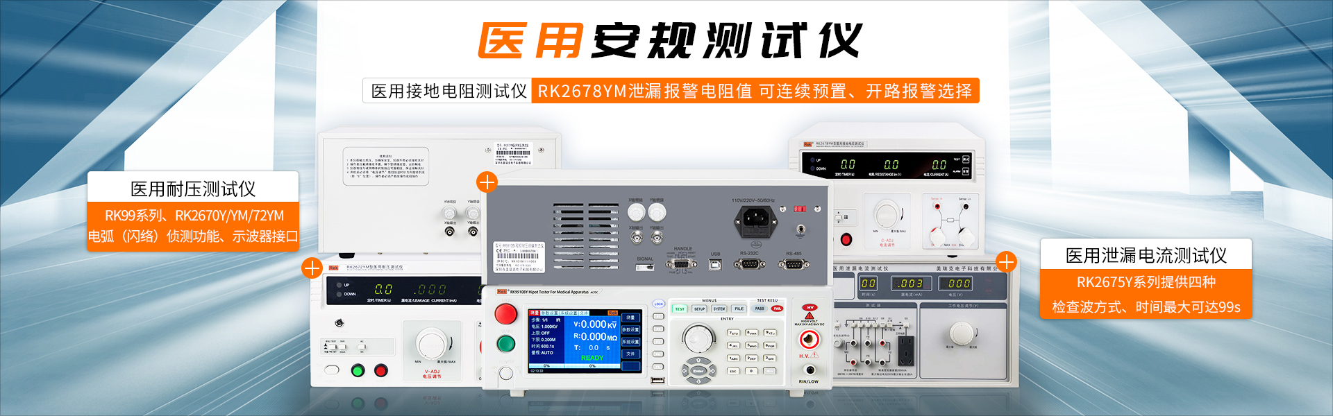 美瑞克堅持自主創(chuàng)新,現(xiàn)已研發(fā)并生產(chǎn)了安規(guī)、醫(yī)用安規(guī)、超高壓耐壓儀、數(shù)字高